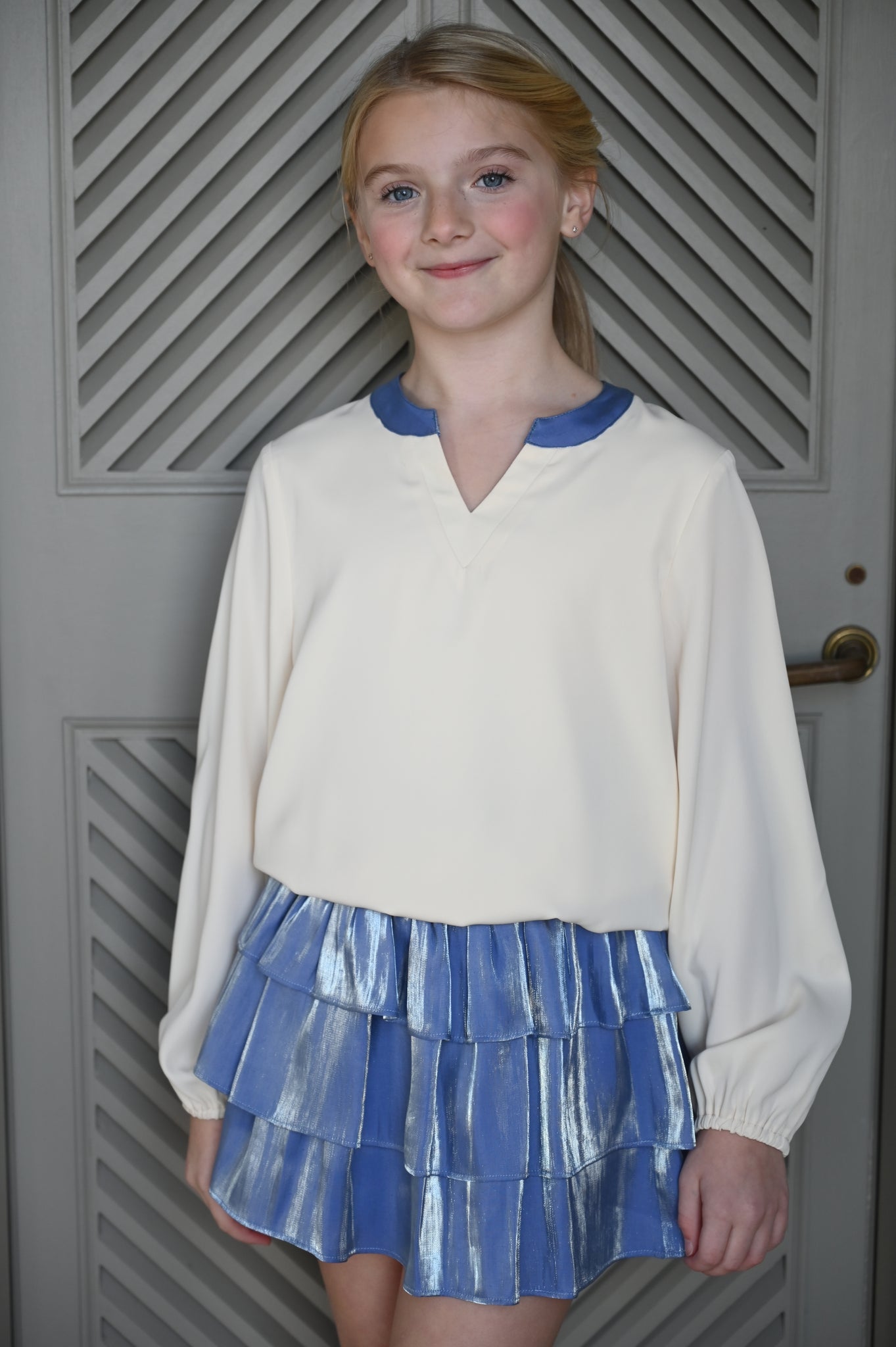 Milly Top - Cream/Blue