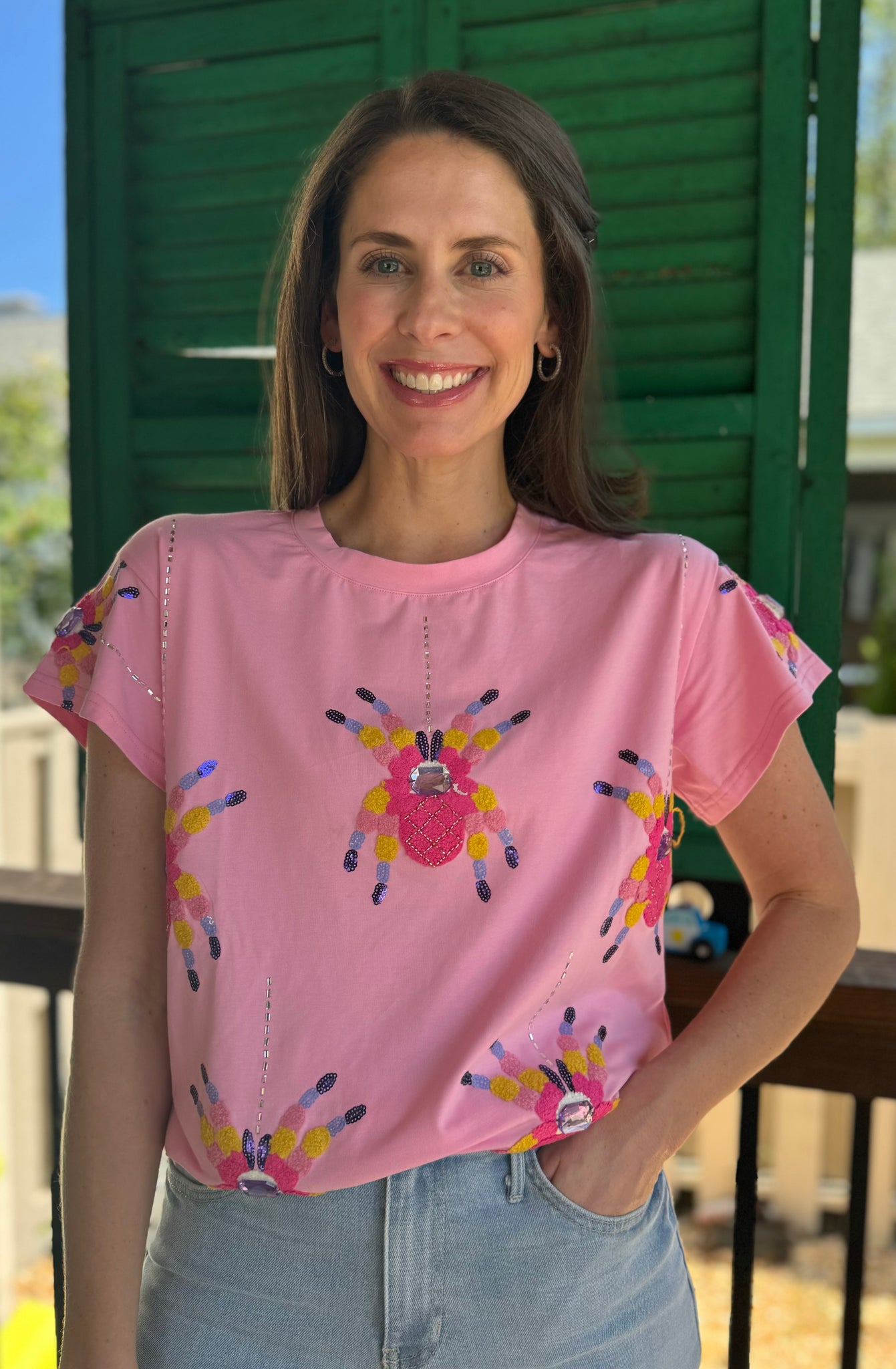 Women’s Pink Scattered Spider Tee