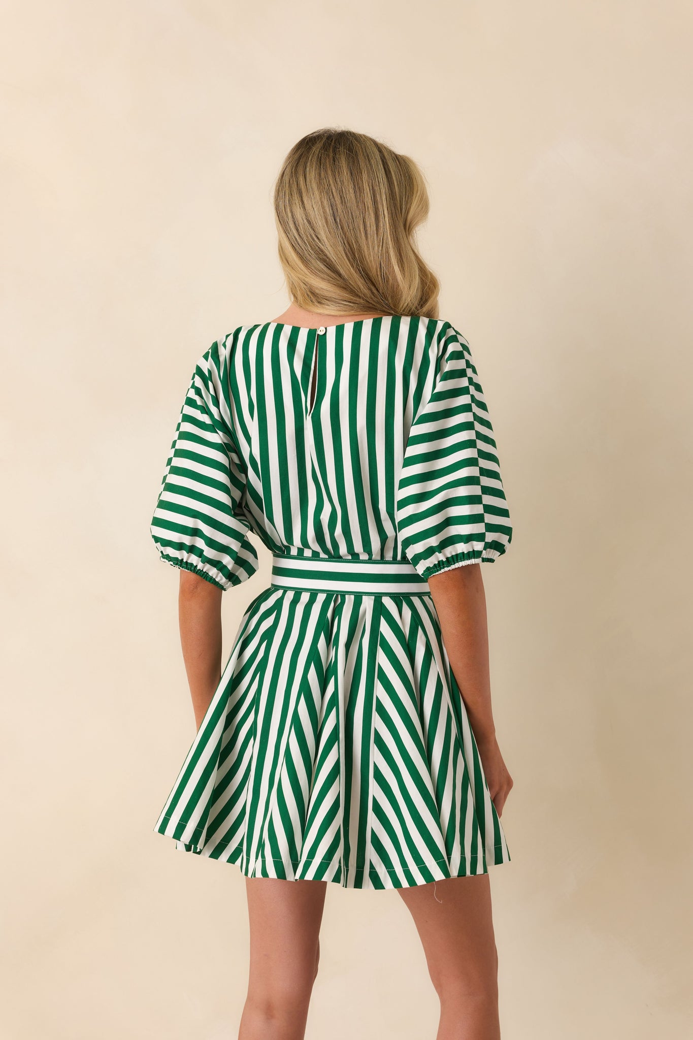Grand Entrance- Fallon Swing Dress Green Stripe