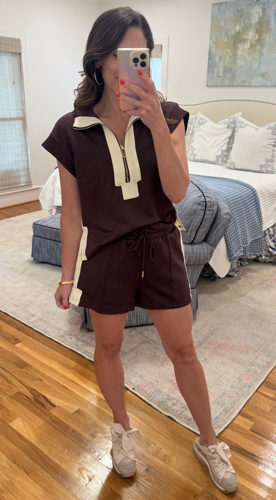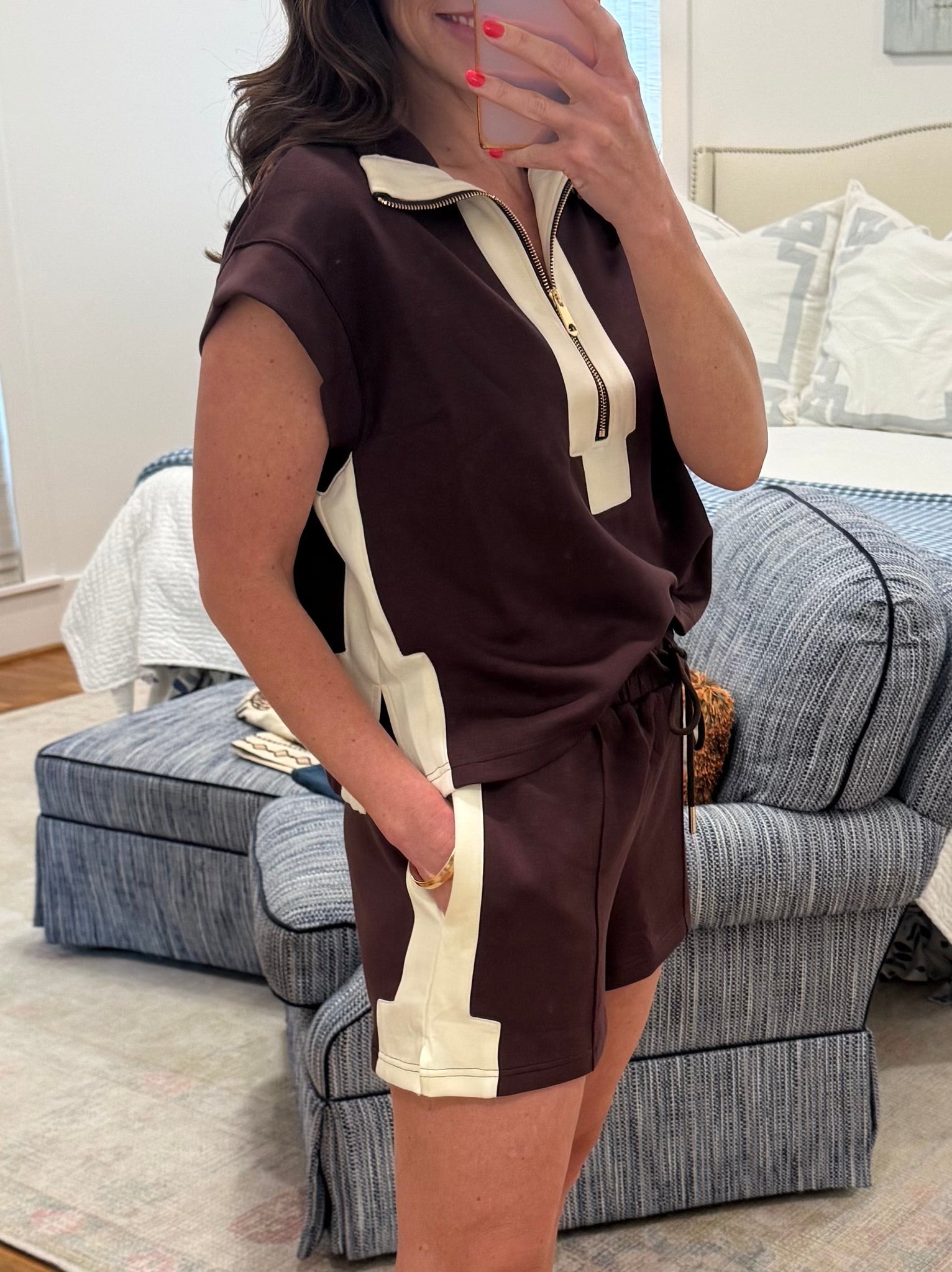 Chocolate Brown and Cream Knit Short Set